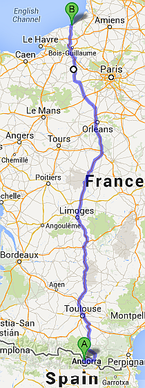 Total Fuel used 232.20€ (fill up Dieppe 46.53€; Deux 69.67€; Pas de la Casa - cash only (Andorra) 50€; exit Andorra 66€)